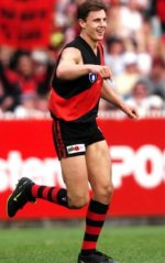 After only four seasons with the Bombers, most people see Matthew as one of the future, if not current, superstars of the game. He was picked up in the Under 16 draft in a special deal that saw three players go over to the Dockers. Having starred in the reserves a number of times, and impressing everone with his 1995 finals appearances, he is now an integral part of the Essendon forward line. In his first game he kicked a goal with his first kick in the first few minutes of the game - you can't do much better than that! He played out 1995 in the seniors, including the two finals games, the first of which he played very well. In 1996 he played almost half the season in the seniors, and dominated in the match against Adelaide kicking seven goals.